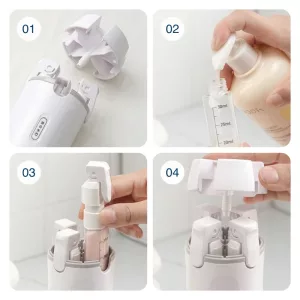 إعادة تعبئة عبوات السفر من أورتي ريكس تتم في دقائق وبدون فوضى. تتيح لك خطوط القياس الواضحة رؤية المحتوى وتجنب الأخطاء.