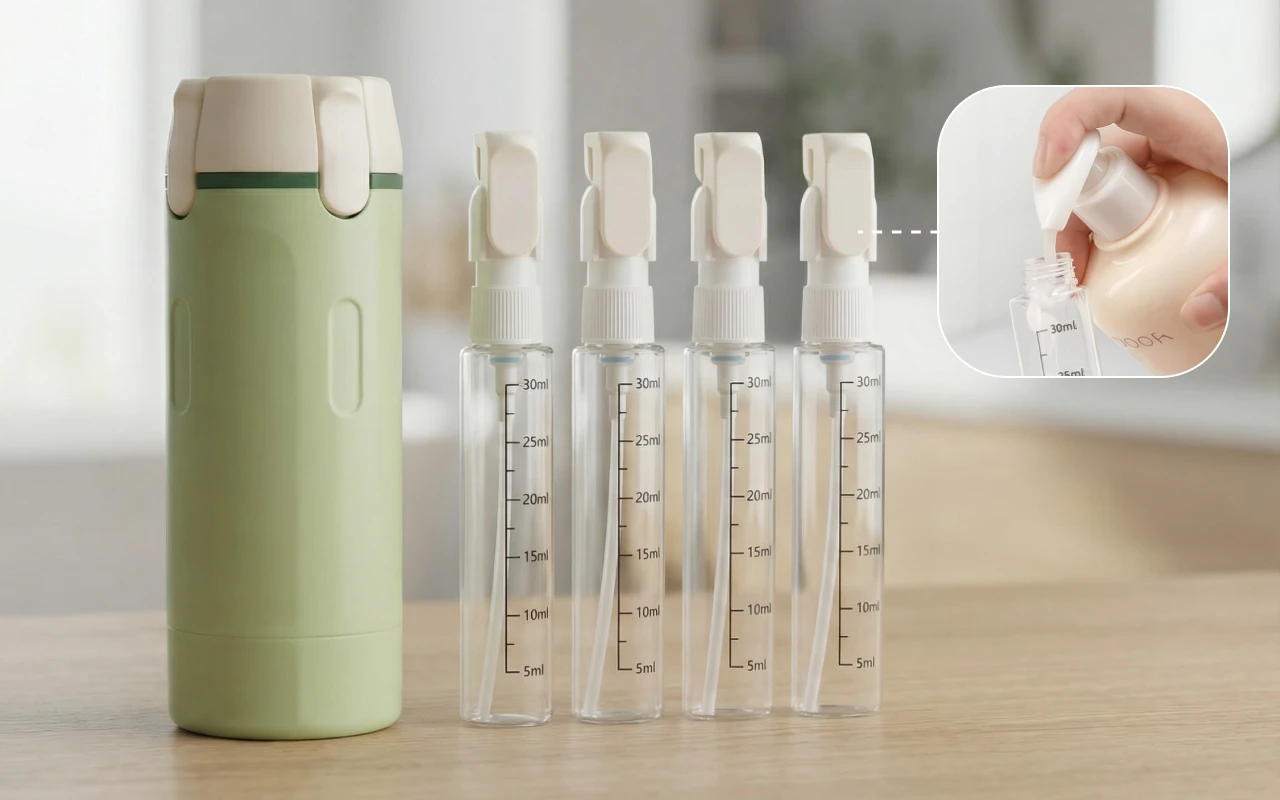 سهل جدًا في التعبئة! ملأت زجاجتي بكريم واقي الشمس وكريم الوجه وغسولين للجسم لأطفالي عندما ذهبنا في إجازة.