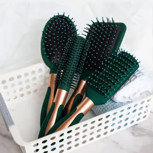 تمشيط شعري الكثيف أصبح أخيراً سهلاً. الشعيرات ناعمة وأحب شعور التدليك في فروة رأسي بعد استخدام هذه المجموعة. رائعة أيضاً للتسريح!