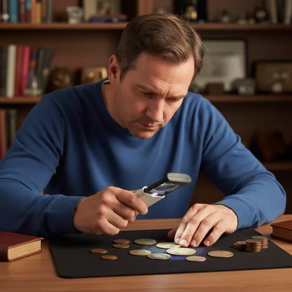 أستخدم هذه العدسة القابلة للطي لمجموعتي من العملات المعدنية والوضوح مذهل. إنها متينة، والضوء مثالي لرؤية التفاصيل الصغيرة.