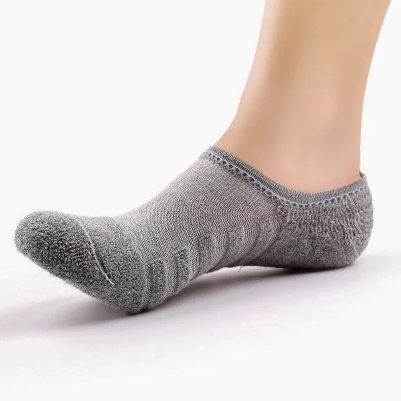 السيليكون المانع للانزلاق يحافظ على كل شيء في مكانه، فلا يتجمع أو يتحرك شيء. امشِ أو اركض بثقة مع العلم أن الجوارب لن تنزلق أبداً.