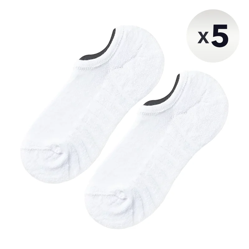 هذه الجوارب لا تظهر أبداً فوق حذائي الرياضي وتبقى ثابتة طوال اليوم. أحب كيف تبقى قدمي منتعشة حتى بعد جولات التسوق.
