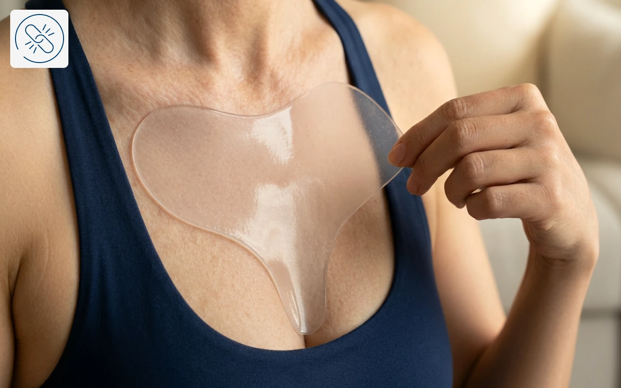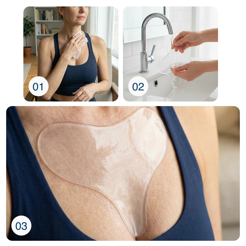 أحب مدى سهولة استخدام لصاقة السيليكون هذه. تبقى ثابتة طوال الليل وتجعل الخطوط على صدري تكاد تختفي بحلول الصباح. أشعر بثقة أكبر بكثير.