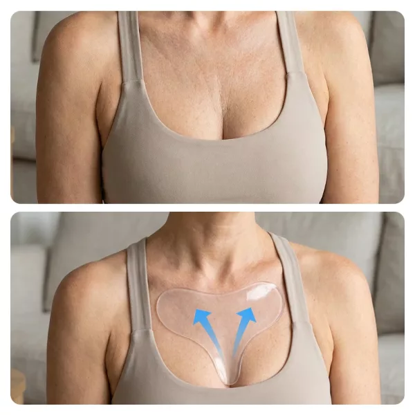 بشرتي حساسة، لكن هذه اللصاقة لطيفة جداً. أخيرًا أرى صدري يبدو أصغر سنًا من دون أي تهيج أو عناء.