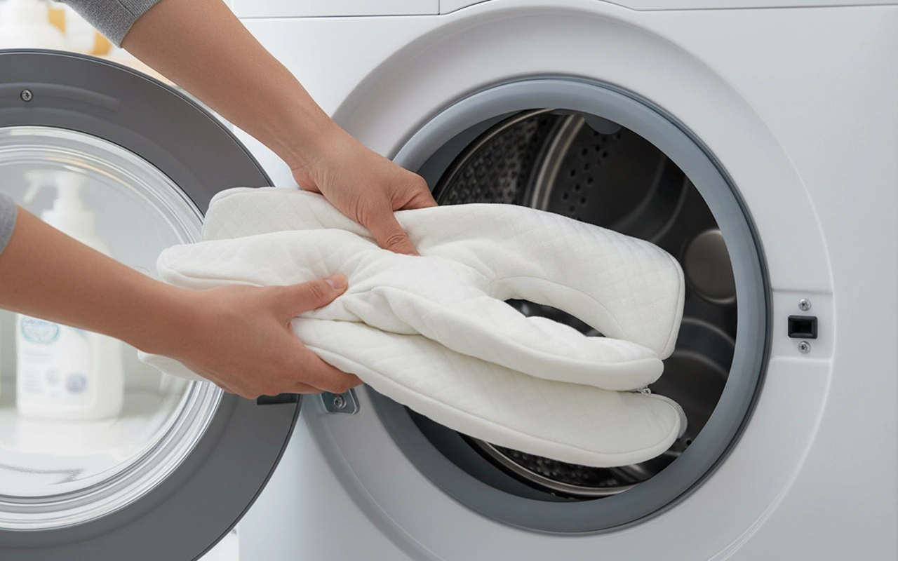 غسل الغطاء سهل جداً. الرغوة بالداخل تحافظ على شكلها، ووجهي لم يعد يحصل على تلك الخطوط المزعجة أثناء النوم.