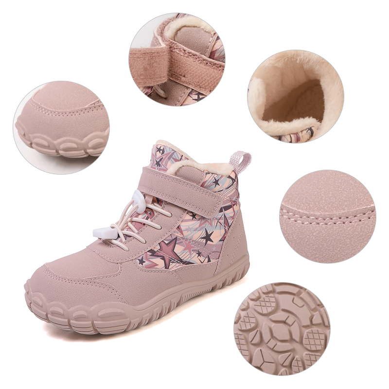 بطانة سميكة من الفرو تحتضن كل قدم برقة ونعومة. يبقى الدفء محبوسًا حتى أثناء اللعب في البرد.