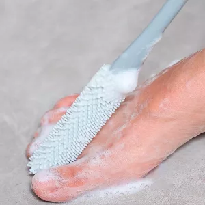 حافظ على نظافتك من خلال تنظيف الأماكن الصعبة بين أصابع قدميك. تصل شعيرات السيليكون الناعمة إلى أماكن يصعب على الأدوات الأخرى الوصول إليها. لا مزيد من الانحناء المزعج أو الشعور بعدم الراحة أثناء غسل قدميك. كل استحمام يترك بشرتك ناعمة ومريحة.
