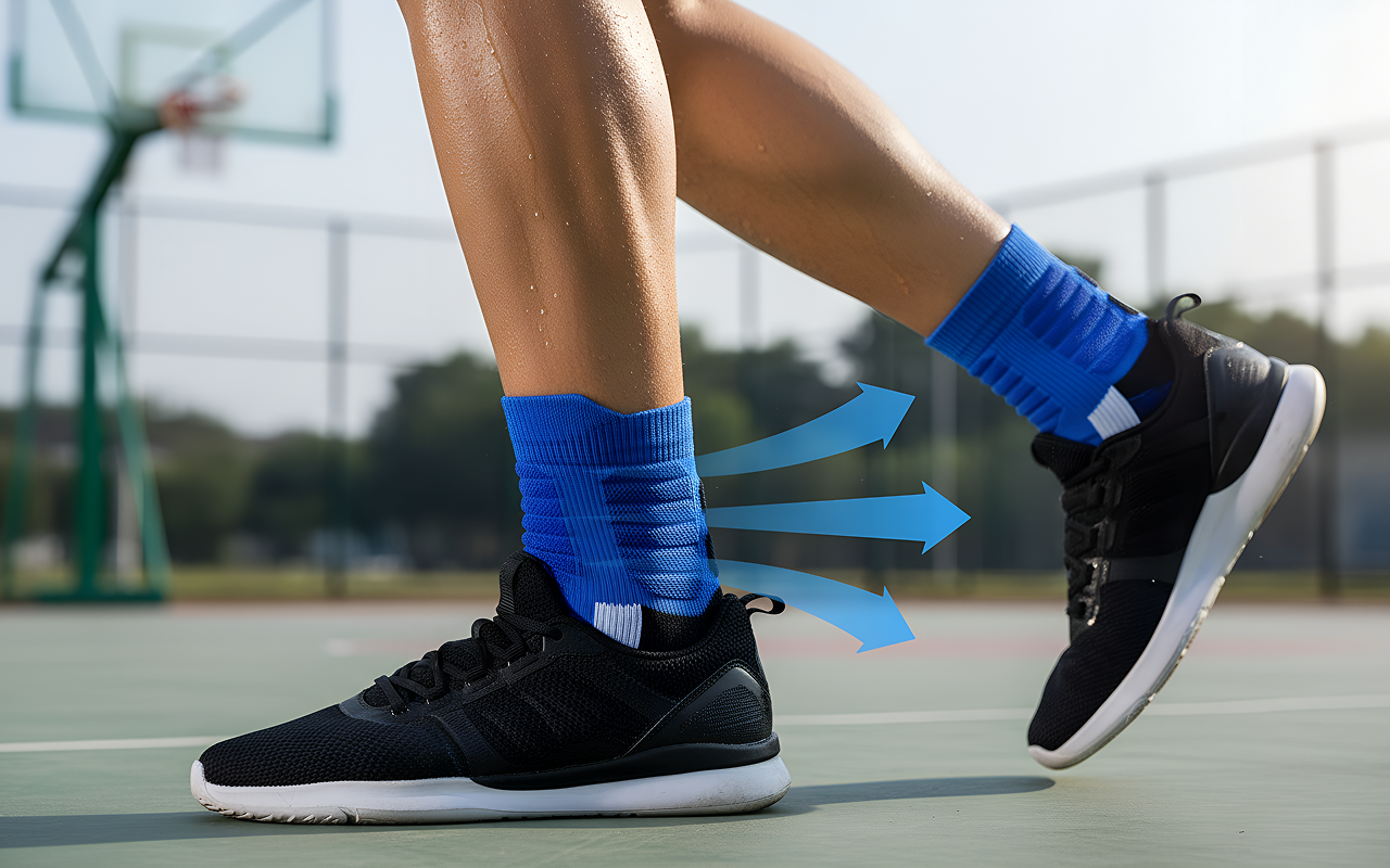 هذه الجوارب تبقي قدمي باردة أثناء مباريات كرة السلة. لا تصبح رطبة أو تنزلق للأسفل، وأصابعي لا تشعر بالضيق حتى بعد ساعات في الخارج.