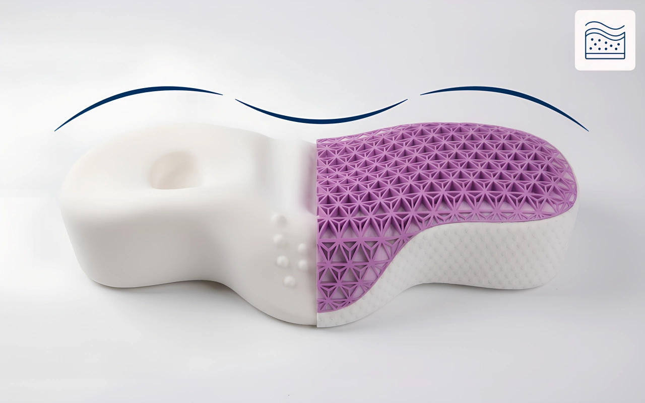 هذا التصميم يعزز الوضعية الصحيحة لنوم هادئ. يساعد في تقليل الألم من خلال دعم الانحناءات الطبيعية.
