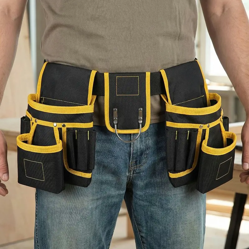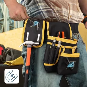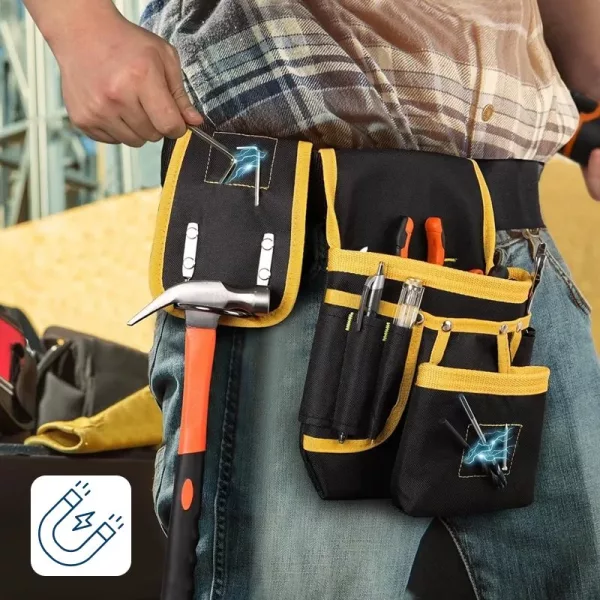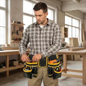 أستخدم هذا الحزام عند تركيب الخزائن. أحتفظ بالبراغي واللقم والقلم والمستوى منفصلين، فلا أضطر للبحث في الداخل، وحزام الخصر ناعم ومريح.
