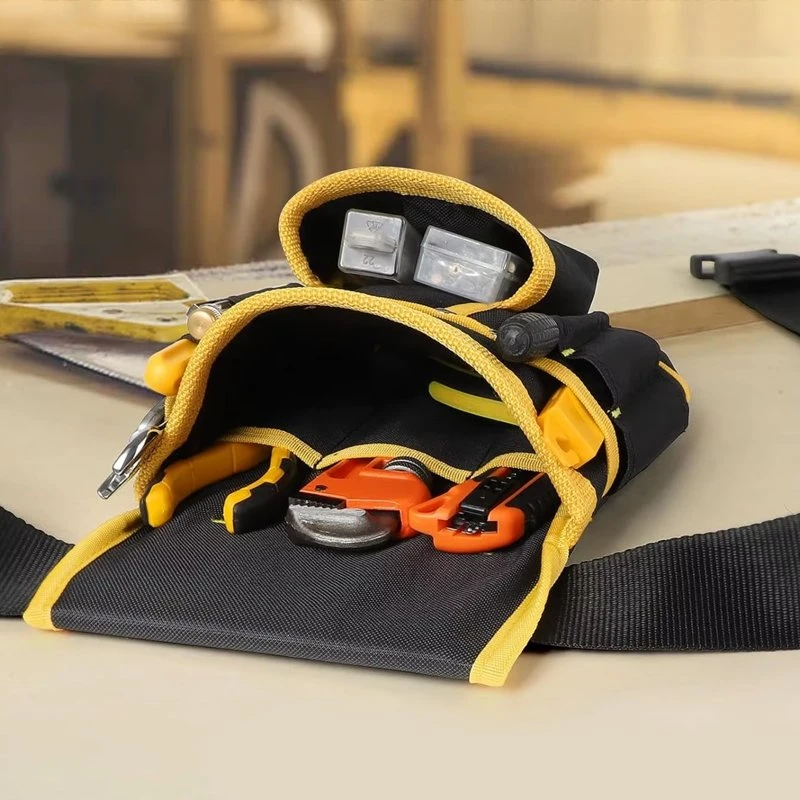 أرتدي هذه الحقيبة في النوبات الطويلة أثناء تمديد الأسلاك في المنازل. الحزام المبطن يريح الوركين، ويمكنني الوصول إلى شريط القياس والقواطع والبراغي دون أن أنظر للأسفل.