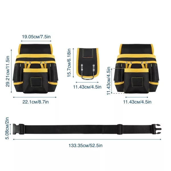 الدرزات المعززة تتحمل بسهولة المطارق الثقيلة والمثاقب وقطع العتاد الضخمة. القماش المتين يقاوم غبار مواقع العمل، ليخدم البنّائين والكهربائيين والسبّاكين عبر عدد لا يحصى من المشاريع.