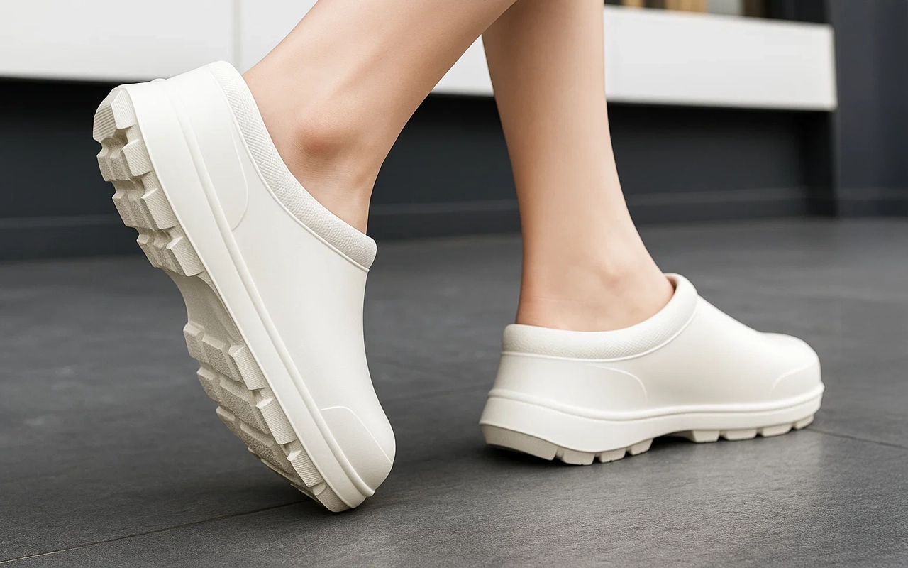 أحب كم أن هذه القباقيب خفيفة! قدماي لم تعد تؤلمني بعد العمل. التنظيف سهل جداً بمسحة سريعة فقط. لا مزيد من الانزلاق.