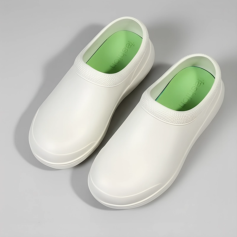 أحب كم أن هذه القباقيب خفيفة! قدماي لم تعد تؤلمني بعد العمل. التنظيف سهل جداً بمسحة سريعة فقط. لا مزيد من الانزلاق.