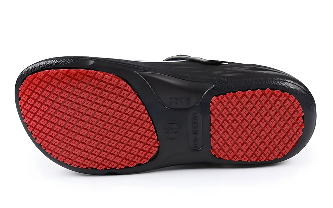 الأرضيات المبللة والبقع الدهنية لم تعد مشكلة الآن. نمط النعل الفريد يجعل كل خطوة ثابتة ومستقرة.
