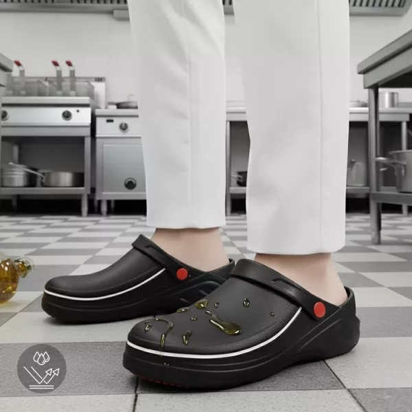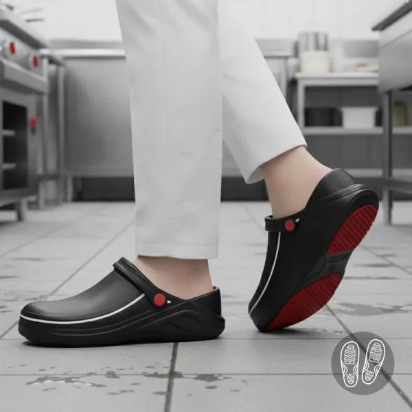 هذه أحذية المطبخ مريحة جدًا حتى بعد وردية مزدوجة. قدماي لا تؤلماني على الإطلاق وأحب سهولة تنظيفها.