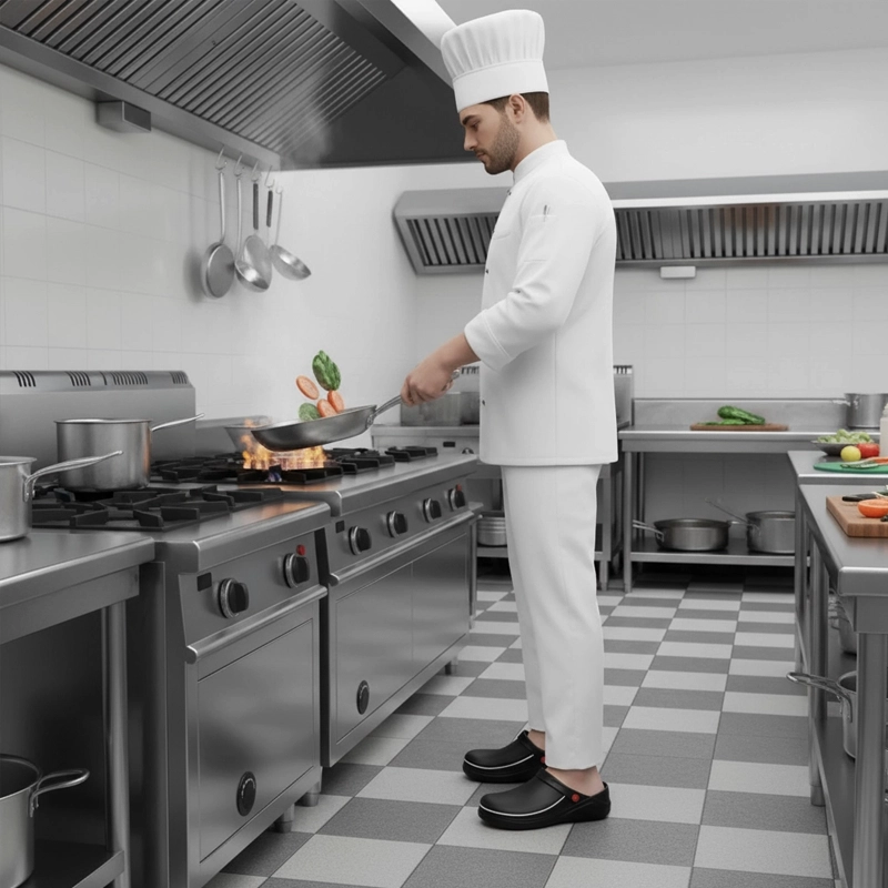 هذه أحذية المطبخ مريحة جدًا حتى بعد وردية مزدوجة. قدماي لا تؤلماني على الإطلاق وأحب سهولة تنظيفها.