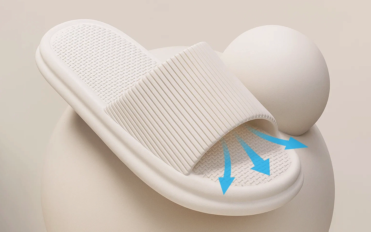 تصميم مفتوح يسمح بتدفق الهواء بحرية لبيئة باردة ومريحة. مادة مقاومة للماء تبقي القدمين جافتين وخالية من الروائح في كل مرة.