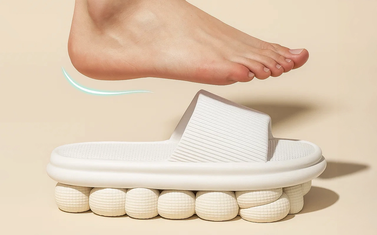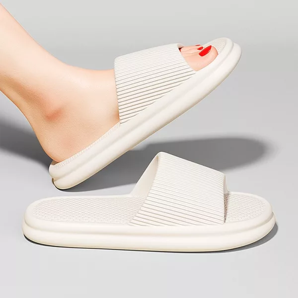 هذه النعال هي الأكثر نعومة التي جربتها على الإطلاق. أشعر أن قدمي سعيدة ومسترخية حتى بعد الوقوف لفترات طويلة. الطرف المفتوح يبقيها باردة وجيدة التهوية.