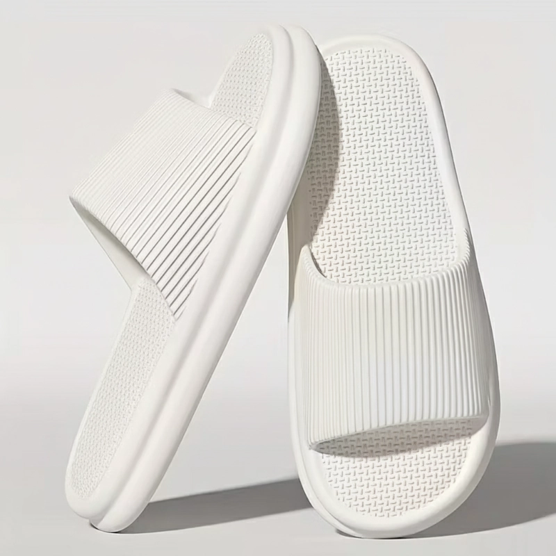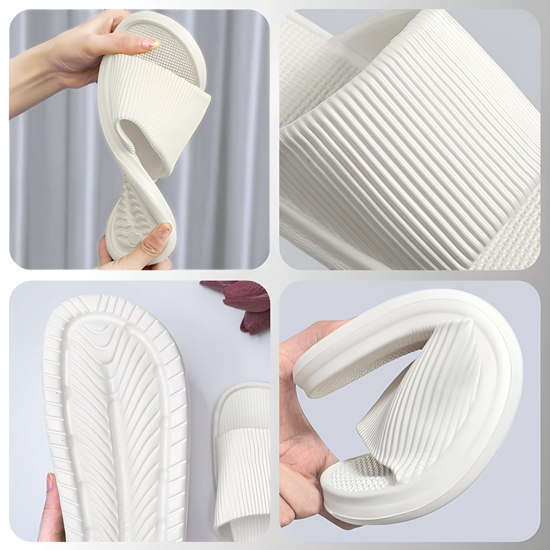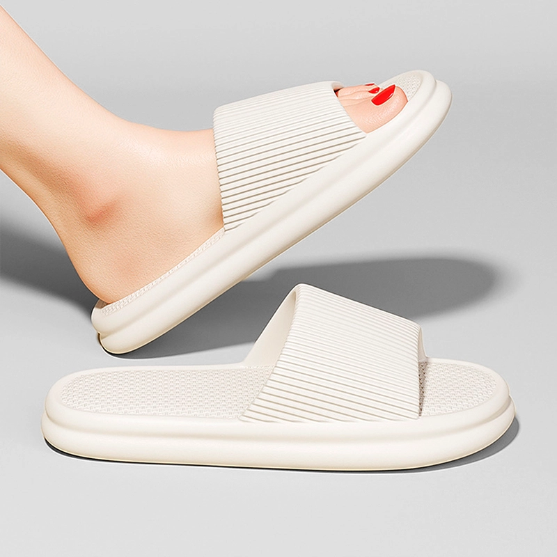 هذه النعال هي الأكثر نعومة التي جربتها على الإطلاق. أشعر أن قدمي سعيدة ومسترخية حتى بعد الوقوف لفترات طويلة. الطرف المفتوح يبقيها باردة وجيدة التهوية.