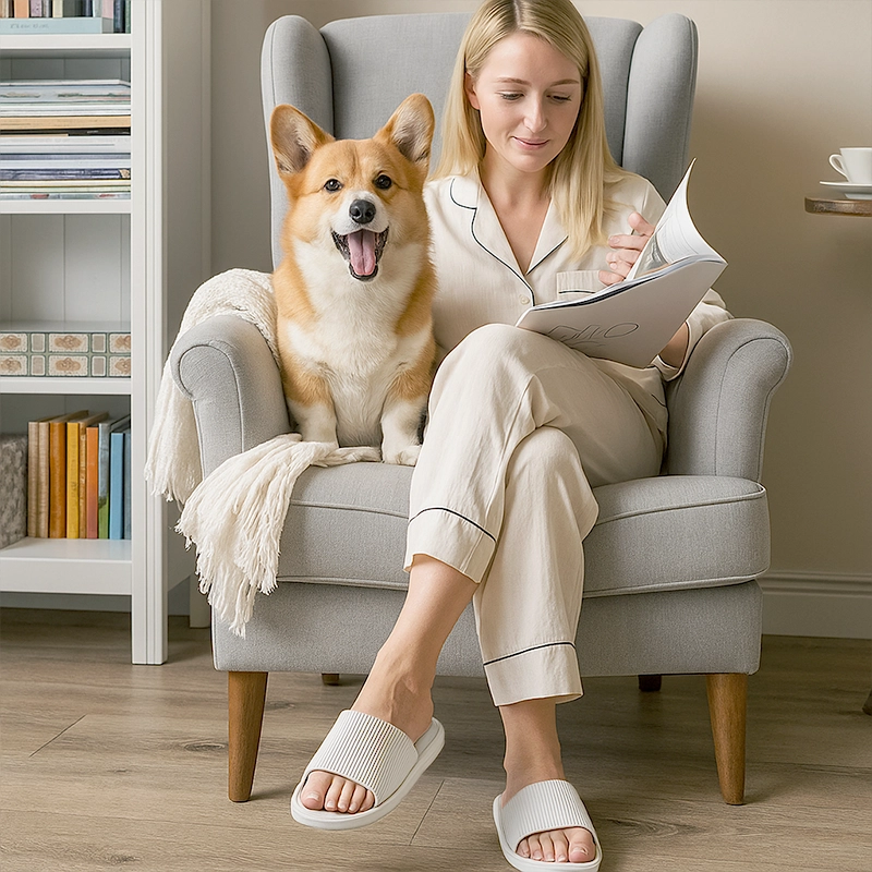 أحب مدى خفة هذه الأحذية المنزلية، وقدماي لا تتعرقان أبداً. تجف بسرعة ودائماً رائحتها منعشة حتى بعد ساعات من ارتدائها في المنزل.