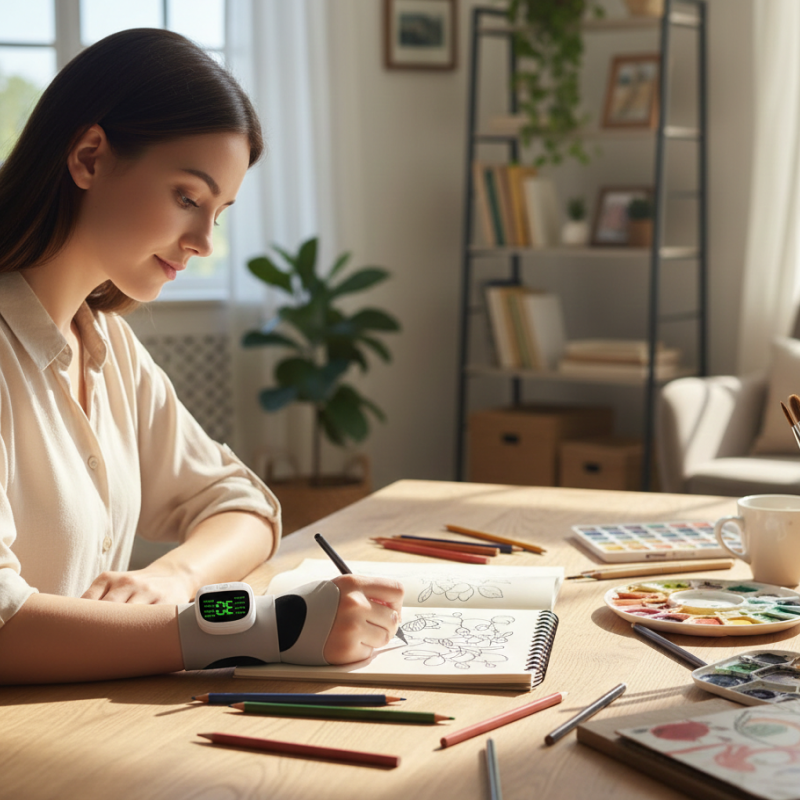 دائماً أشعر بألم في يدي بعد الحياكة، لكن هذا الجهاز يذيب الألم. أستطيع اختيار أي مستوى، ومفاصلي تصبح أكثر مرونة كل يوم.