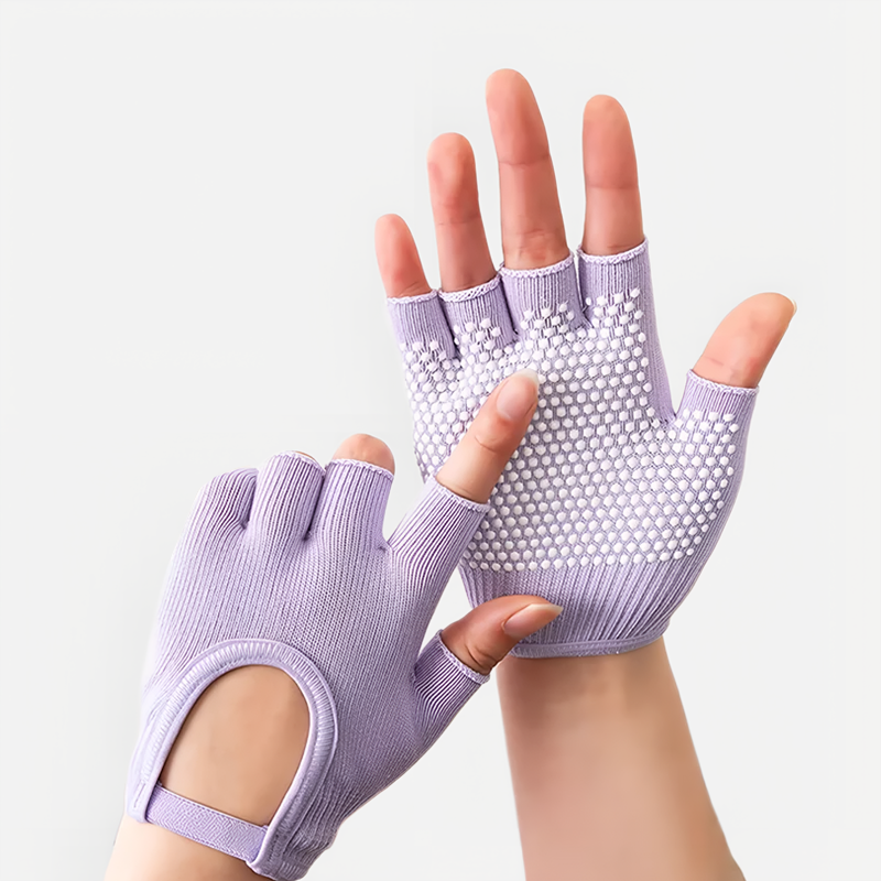 ارتداء هذه القفازات أثناء تمارين البيلاتس يجعل يدي مرتاحة. أصبح لدي توازن أفضل وراحتي يدي لا تلتصق بعد الآن.