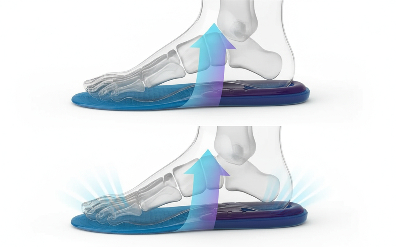 وسائد هلام السيليكا السميكة تلطف كل صدمة أثناء الحركة. يبقى المفاصل والكعب محميين، مما يقلل الإجهاد اليومي.