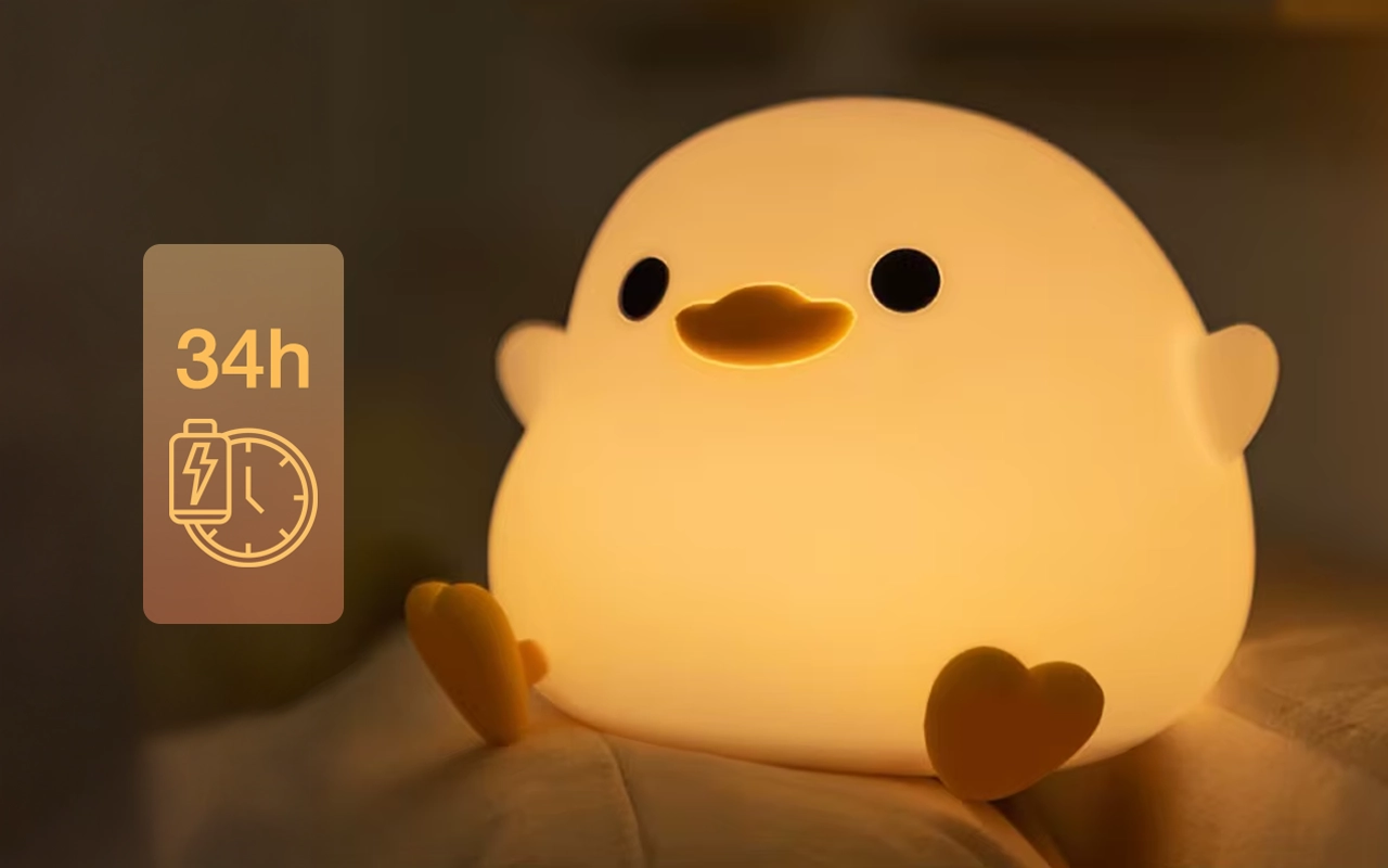 أحب أن مصباح البطة مصنوع من سيليكون بدرجة أمان غذائي. عندما يقضم طفلي الصغير عليه لا أتوتر، وما زال توهجه ناعمًا ودافئًا.