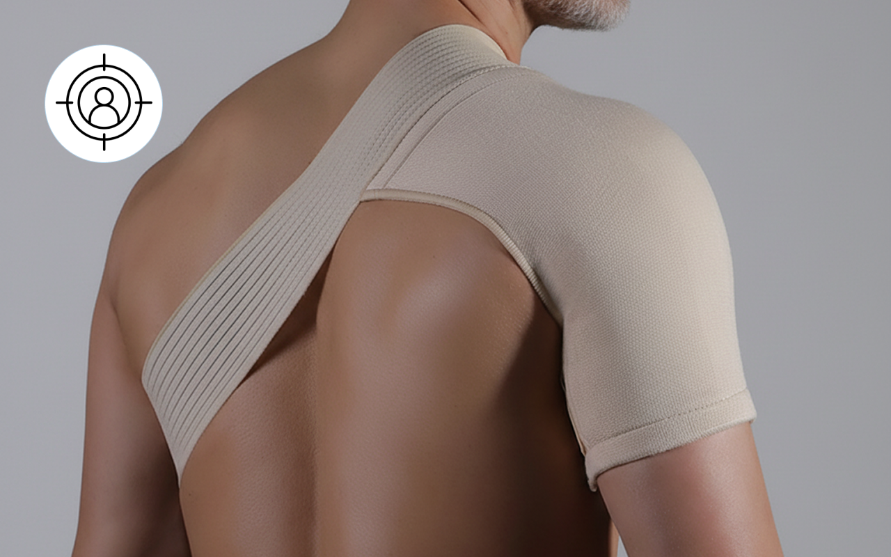 تصميم منحني يتبع شكل الكتف لتثبيت آمن. يبقى في مكانه أثناء الحركة دون انزلاق أو تجعد.
