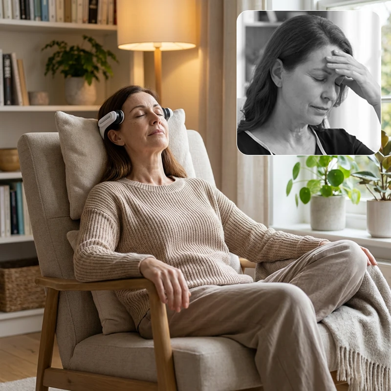اشعر بتخفيف الضغط بسرعة من جميع جوانب فروة رأسك. اختبر الراحة والاسترخاء مع تلاشي الانزعاج.