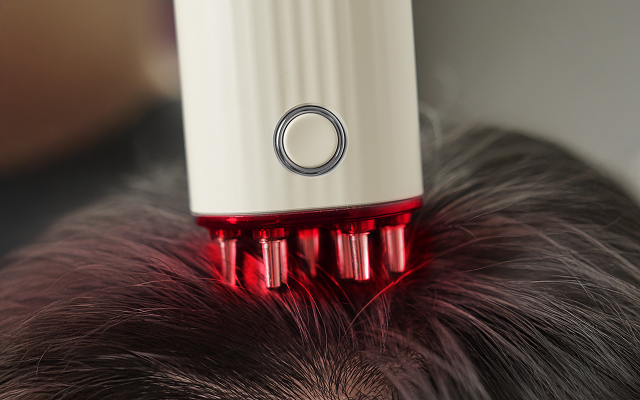 الطاقة المستهدفة للضوء الأحمر تساعد في إحياء البصيلات المتعبة بسرعة. لاحظ تحسنًا مرئيًا يجعل الشعر يبدو أكثر كثافة وصحة.