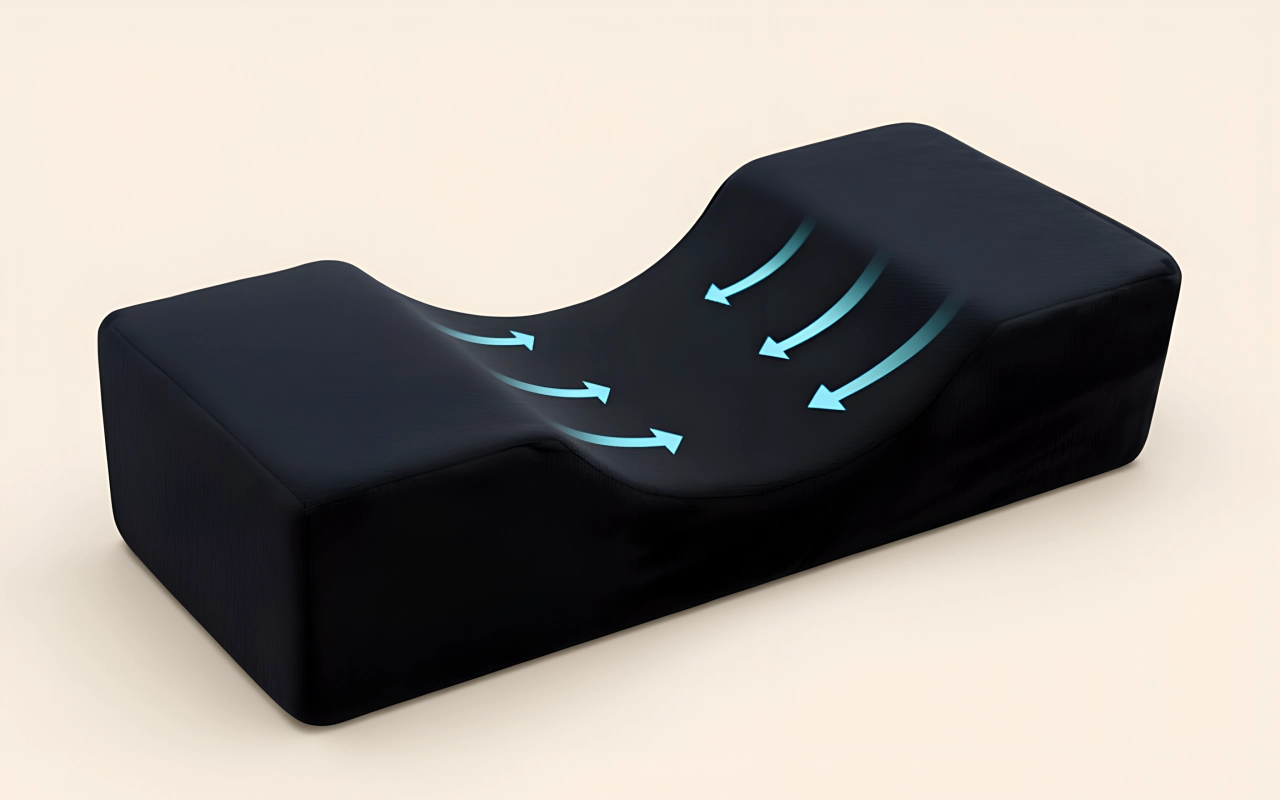 الشكل المجوف الفريد يتبع الانحناء الطبيعي لرقبتك. هذا التصميم يقلل الألم ويحافظ على رأسك في الوضع الصحيح.