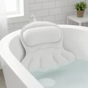 انغمس في استرخاء عميق بعد يوم طويل في العمل. وسادة الاستحمام من أورتوريكس تدعم رأسك ورقبتك وظهرك برفق. استمتع بحمام مريح كما لو كنت في منتجع صحي دون انزعاج الأسطح الصلبة. ابق مرتاحًا لفترة أطول واجعل كل حمام مريحًا.