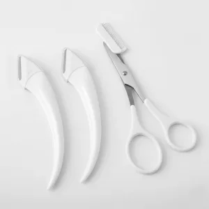 استخدام مجموعة الحواجب يجعل التشذيب سريع جداً قبل العمل! المقص يشعرني بالنعومة على بشرتي والتنظيف فعلاً سهل جداً. أحب روتيني الجديد كثيراً.