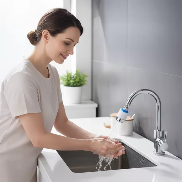 تدوير ناعم 360 درجة للوصول إلى كل زاوية. نظف الصحون واليدين والأحواض دون أي رذاذ مزعج.