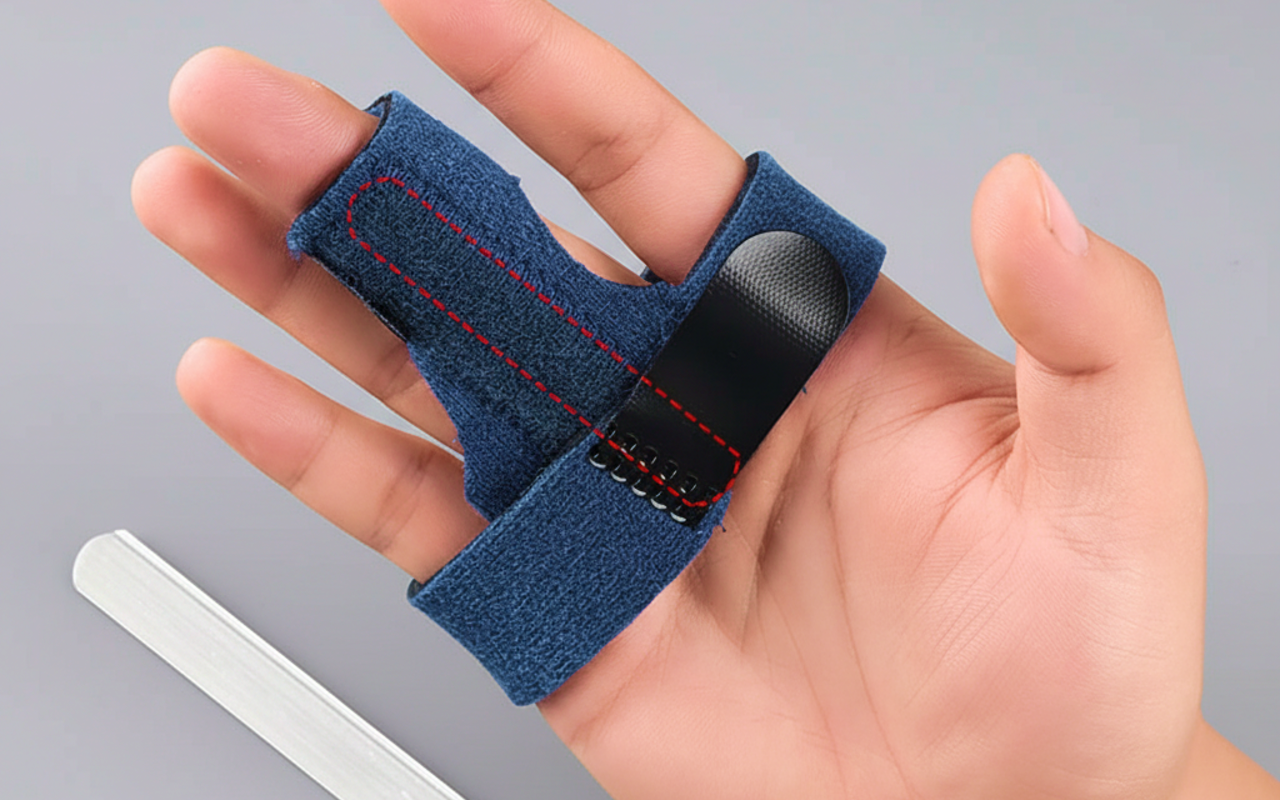 أصيب ابني في خنصره أثناء لعب كرة السلة. الجبيرة أبقت الإصبع مستقيمًا في المدرسة والتدريبات، ولم يكد يشعر بأنه يرتدي أي شيء.