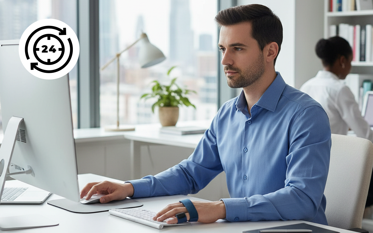 أكتب على لوحة المفاتيح طوال اليوم وقد التويت إصبعي السبابة. هذه الدعامة الصغيرة سمحت لي بالاستمرار في العمل أثناء التعافي، لم يعد هناك ألم حاد مع كل ضغطة مفتاح.