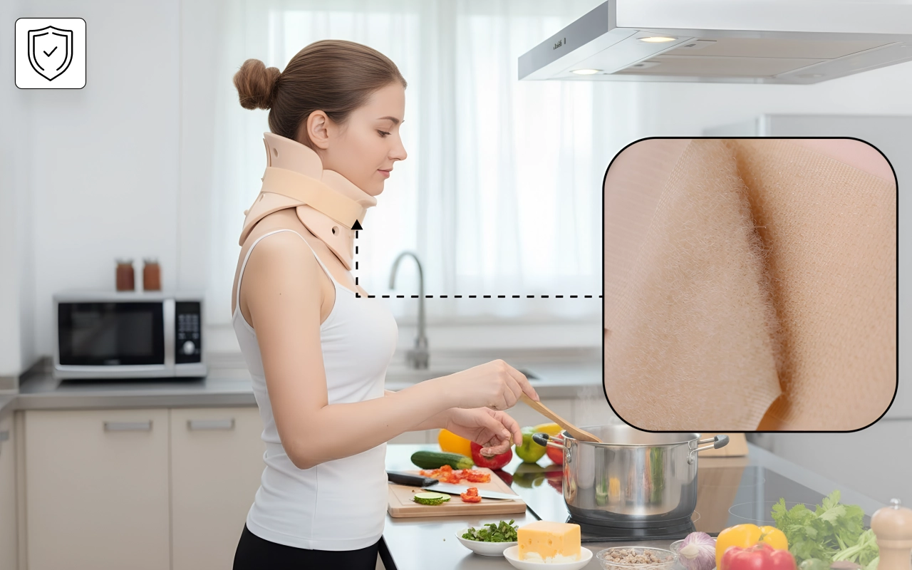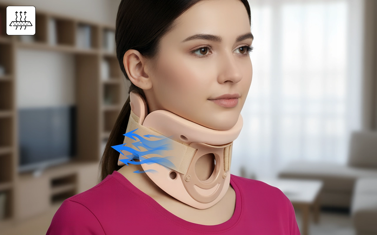 دعامة رقبة لطيفة، مادة قابلة للتنفس، تشعر بالنعومة لكنها مستقرة.