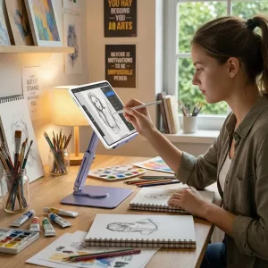 أحب كيف يحافظ هذا الحامل على الآيباد في الارتفاع المناسب. الرسم ولعب الألعاب أصبحا أكثر راحة ليديّ ورقبتي الآن.