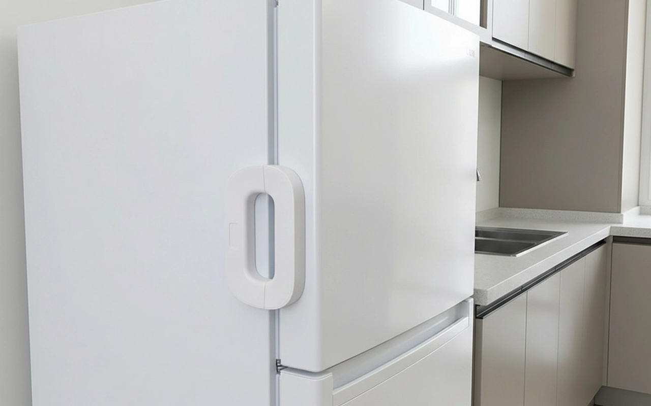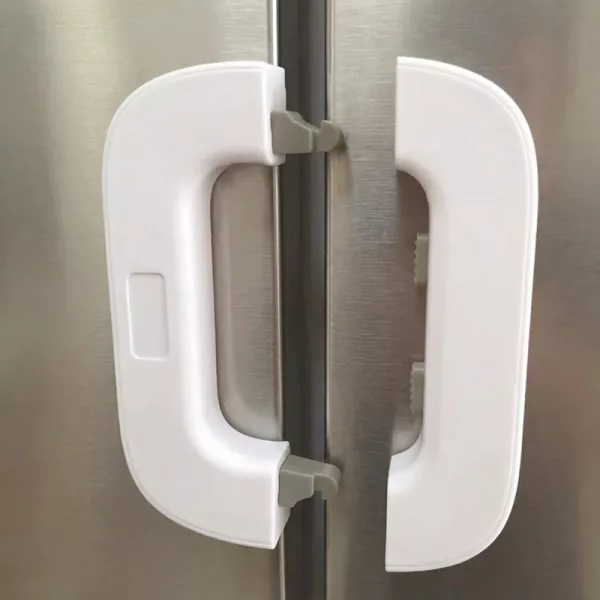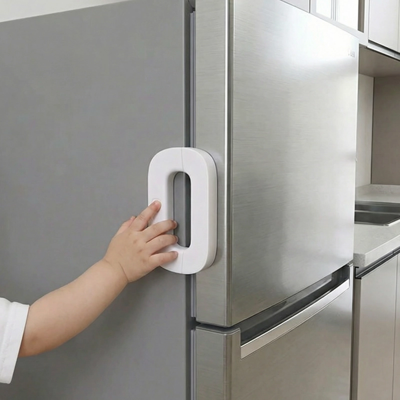 يجعل المطبخ أكثر أمانًا لتوأمنا الذين يحبون فتح كل شيء. التصميم اللاصق قوي ولونه ينسجم مع الثلاجة الفضية.