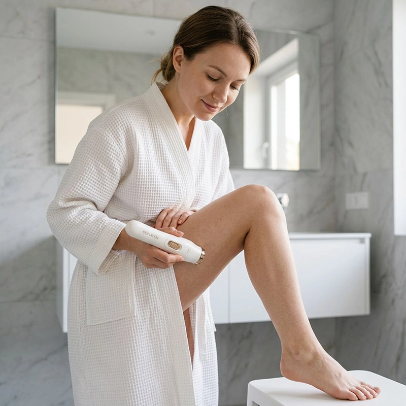 بشرتي شديدة الحساسية، لكن هذا الجهاز لا يزعجني. لا لسع، لا حبوب، فقط ساقان ناعمتان وخط بكيني مرتب.