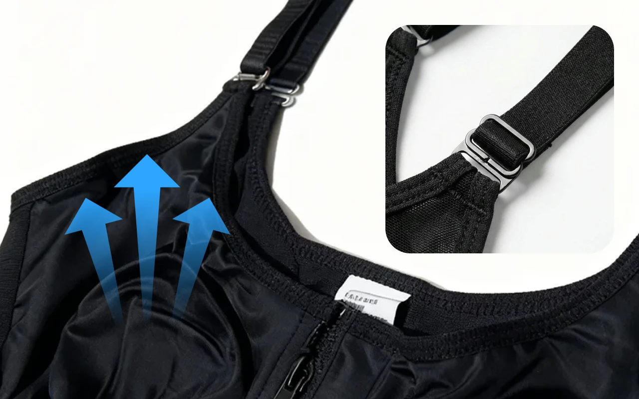 القماش الناعم يسمح لبشرتك بالتنفس مع إحساس بالأمان والراحة. الحمالات القابلة للتعديل تضمن ملاءمة مثالية لجميع أشكال الجسم.