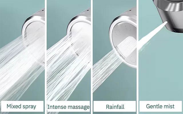 يمكنك الاختيار بين رذاذ لطيف، تدليك مكثف، مطر، ورذاذ مختلط. كل وضعية توفر إحساساً فريداً، لضمان الاسترخاء والراحة.