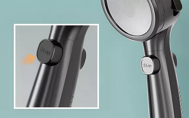 يمكنك إيقاف تدفق الماء بسهولة بضغطة واحدة. تساعدك هذه الخاصية أثناء غسل الشعر أو عند استخدام الصابون، لمنحك تحكماً أفضل في استهلاك المياه.