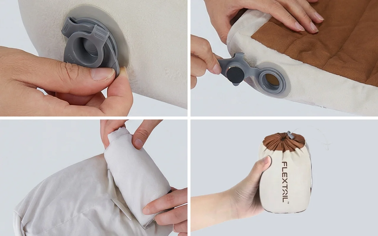 تصميم خفيف الوزن يمكن وضعه في أي حقيبة بسهولة. النفخ والتفريغ السريع يوفران وقتك أثناء التنقل.
