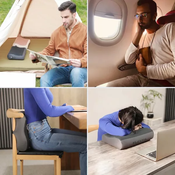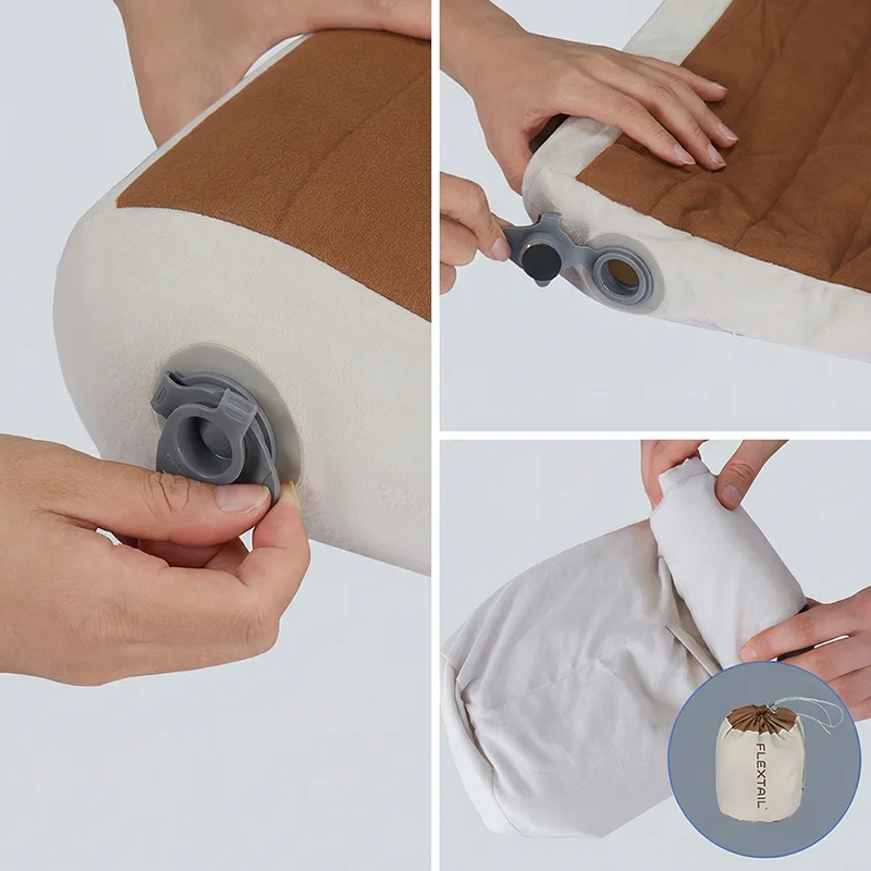 هذه الوسادة المنفوخة أنقذتني أثناء الرحلات الجوية. أنقذت عنقي ولا تكاد تزن شيئاً! يمكن توضيبها بسرعة بعد الاستعمال.