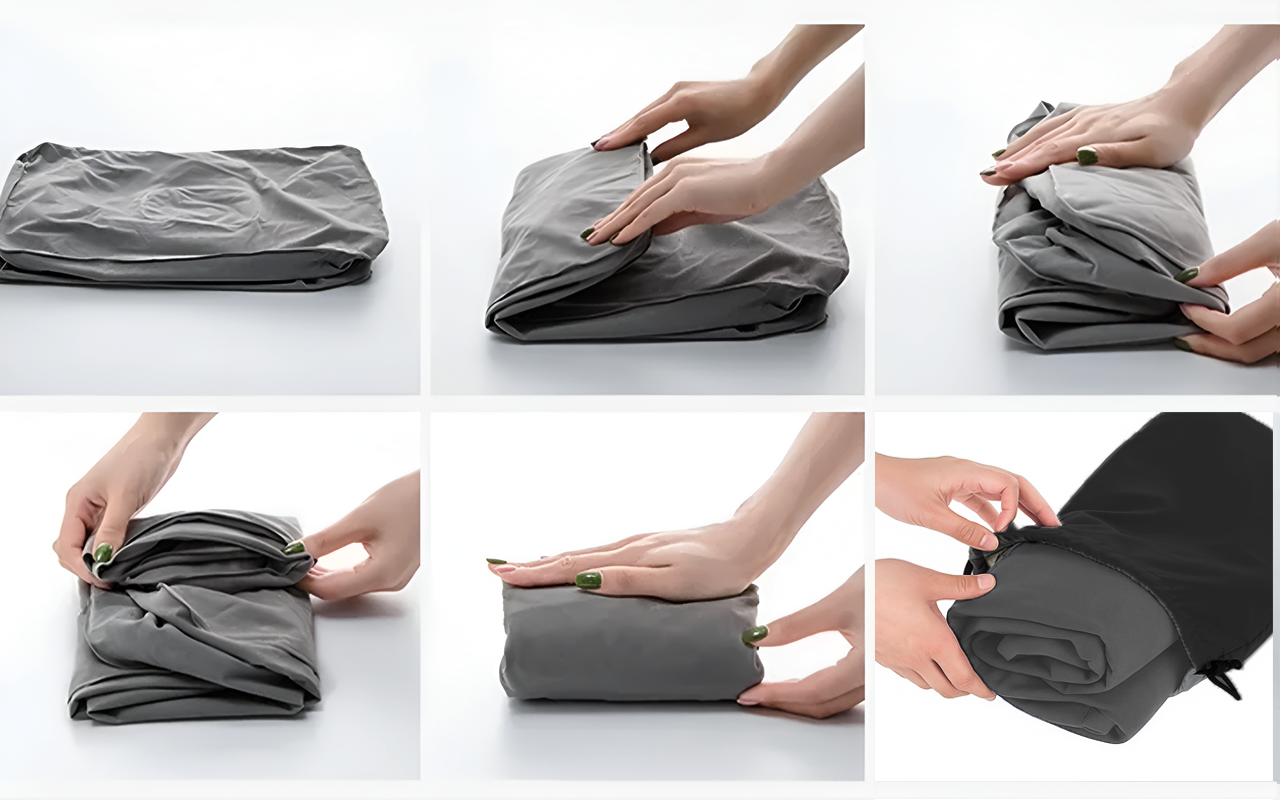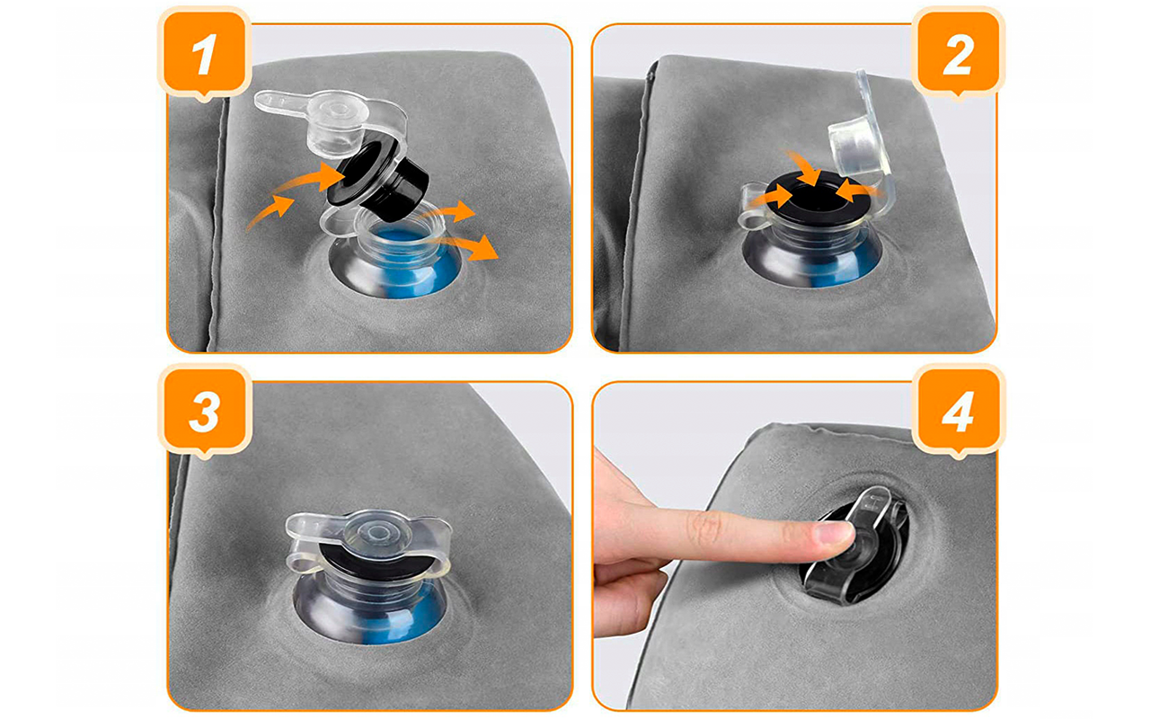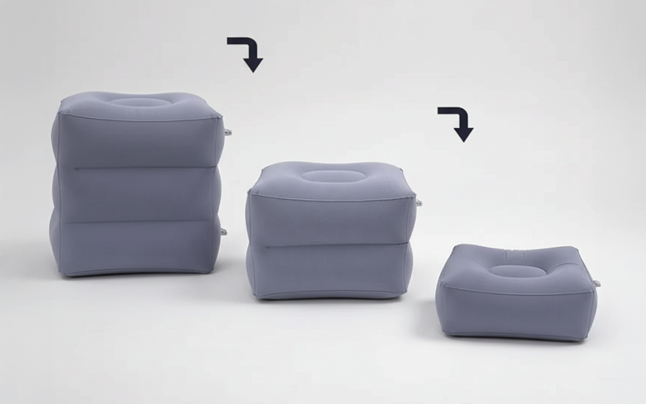 يستغرق فقط بضع ثوانٍ للنفخ وكذلك لتفريغ الهواء. يجعل الرحلات الطويلة بالحافلات والقطارات أكثر راحة بكثير.