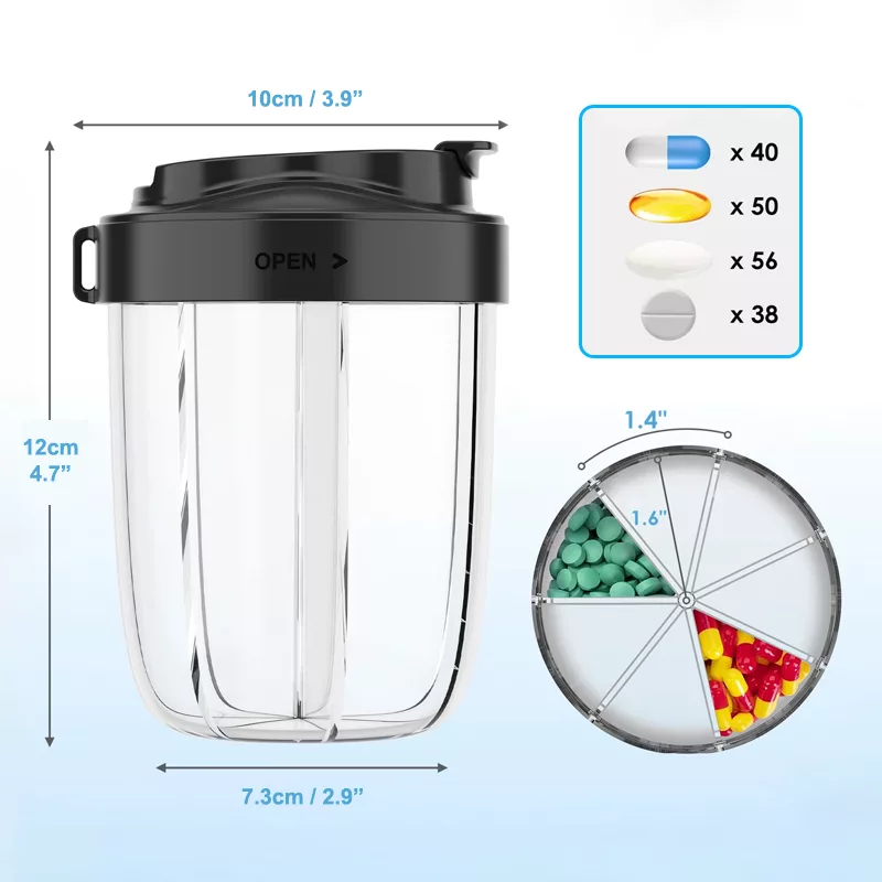 سهلة جداً للفتح والتعبئة. الأقسام الكبيرة تجعل من السهل أخذ الحبوب بسرعة كل صباح قبل إيصال الأطفال للمدرسة.