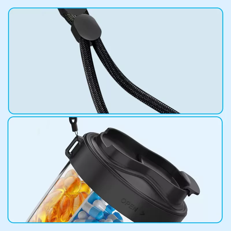 الخيوط الناعمة والغطاء المرن يمنعان الانسكاب أو الانغلاق. الفتحات الكبيرة تسهل إخراج المكملات في أي وقت.